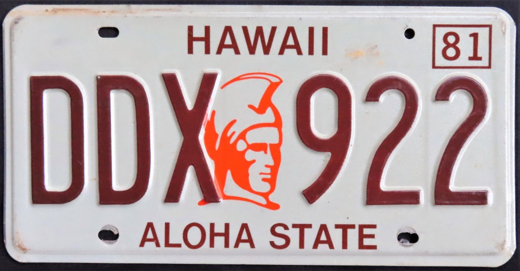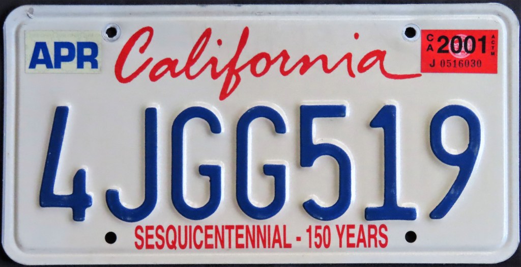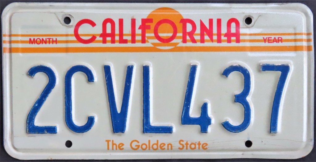 1987: The sun plate, which debuted in 1982 as an extra-cost optional, is the only standard plate issued for the first 10 months of this year. It is the only time California’s official nickname, “The Golden State,” has appeared on a plate.