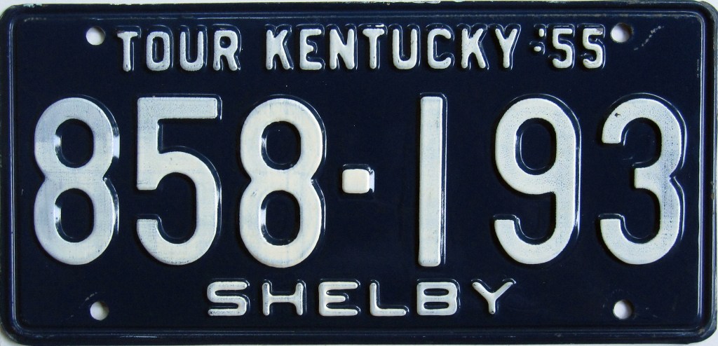 1955: The first in a long run of plates in the same format, with an italicized slogan that sits at the bottom in odd years, and the top in even years.