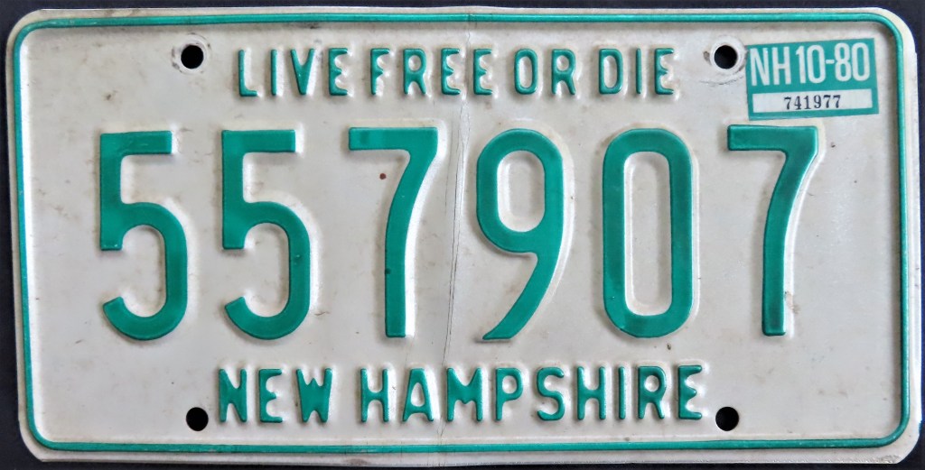 1980: Sometimes this base adds a year in one corner, other times it does not, and the state name and slogan are either embossed or screened and vary in font.