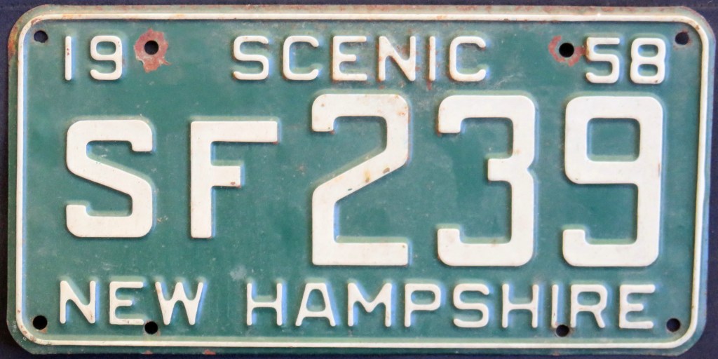 Not Pictured: 1928 (“Potatoes” after the state name, with an accompanying graphic of a large baked potato behind the serial); early to mid-1940s (“Scenic” lead-in); 1947 (“Vacation Wonderland” with graphic of a skier).