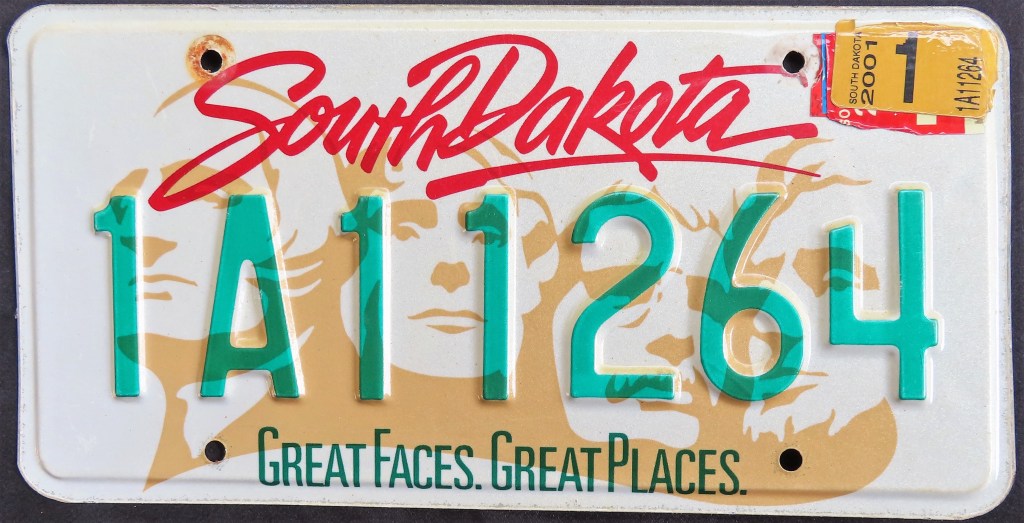 1999: After a string of no-slogan plates, a new base reads “Smiling Faces. Beautiful Places.”
