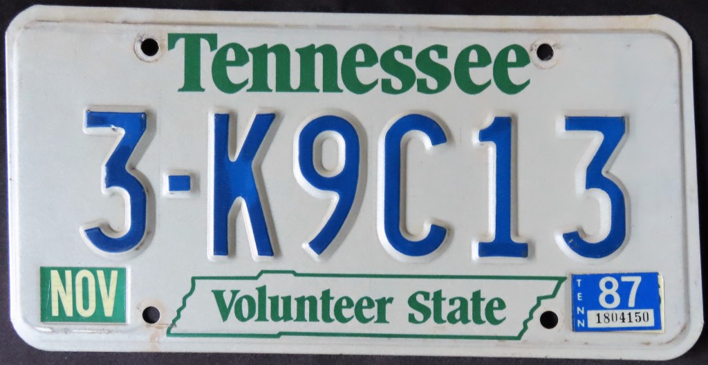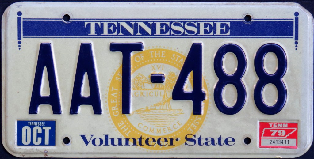 1994: The state “BicenTENNial” plate, which cleverly incorporates the state abbreviation into the slogan, is the first of two consecutive double slogan plates. “Volunteer State” remains, albeit smaller than the last time it appeared.