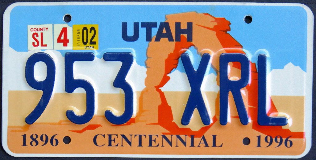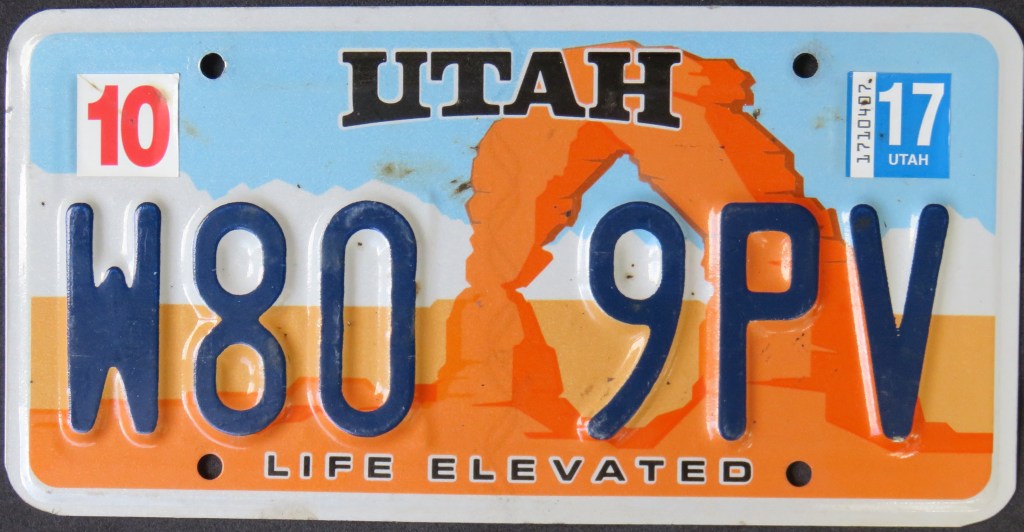 2017: Utah offers a third standard issue, the “In GOD We Trust” design. The plate also includes the slogan “UNITED WE STAND.” Similar to the first Arch plate, it used to be an extra-cost option.