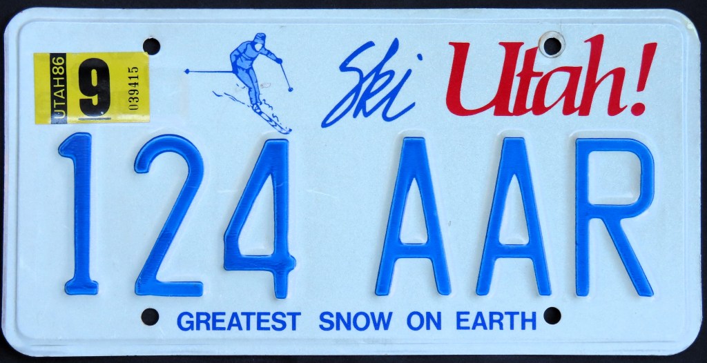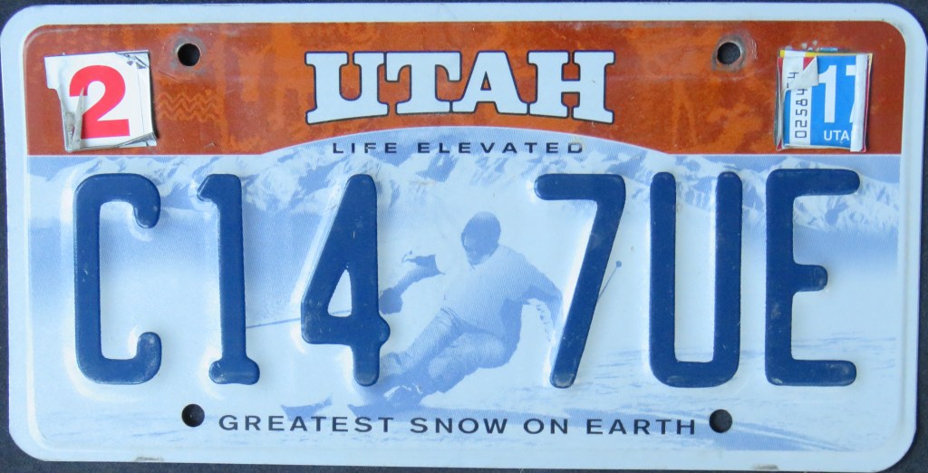 2008: Two new bases replace the existing Ski and Arch plates. The “GREATEST SNOW ON EARTH” slogan is retained on the Ski plate, but both feature the newly-designated tourism slogan “LIFE ELEVATED.”