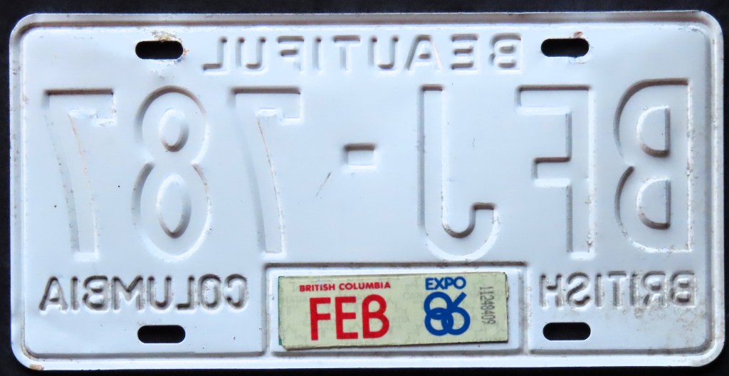 For some reason, after 1981 (presumably), this motorist attached registration stickers to the reverse side through 1986, after which he or she would have received the next base plate.