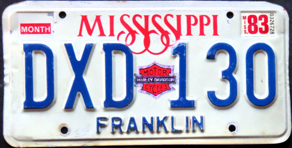 The above plates all feature American flags of various shapes and sizes. Other motorists have placed sports-related, job-related, university-related, and place-related stickers. California “Illegal Alien” refers to State Proposition 187, which dealt with illegal immigration. A clever Oregonian lit up the fir tree to make it Christmas year-round. The preponderance of Mississippi plates is not intentional; is there a reason I’ve found more cases in that state than anywhere else?