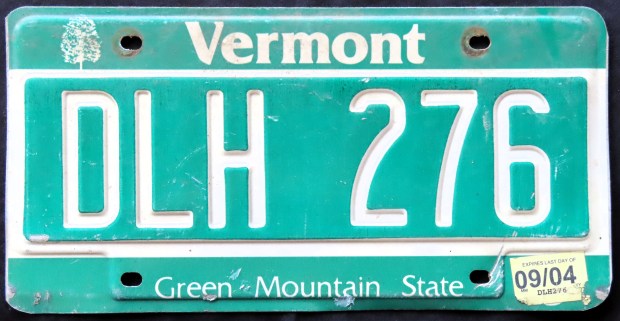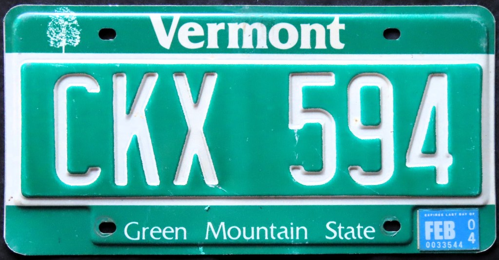 From 1977 through 2003, Vermont registration stickers were more or less identical to the format present on plate CXK 594. But in 2004, they introduced “Smart Stickers,” which displayed the month and year simply as digits with a dash in between. Those with expirations in January, February, and March, however, were given the traditional sticker with the month spelled out.